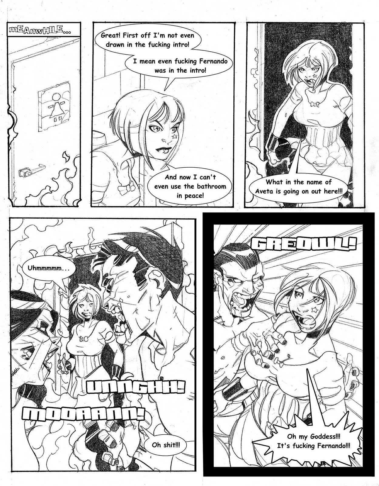 My pages I contributed to the Zombie Outbreak jam session for a forum I frequent. Yes… the last panel is indeed death by dildo!